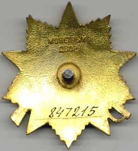 Реверс ордена Отечественной войны I степени со штифтовым креплением Тип 3 |