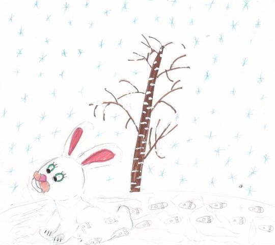 Я как-то раз поехала с папой, чтобы посмотреть на зимний лес. Когда мы приехали, я увидела белого зайца, он прятался от лисицы, ныряя в снег. Я увидела деревья, которые стояли голые, без листьев, и зима почему-то не окутала их белым одеялом.