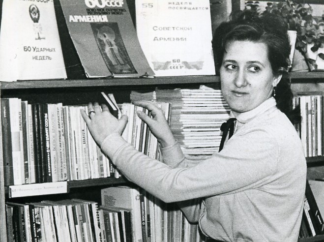 Сама с пяти лет (с середины 1950-х) постоянная читательница сначала «сталинки», а далее и «ломоносовки». В 1982 году пришла сюда на работу библиотекарем, а в 1985 году возглавила коллектив. На должности заведующей находилась до апреля 2009 года.